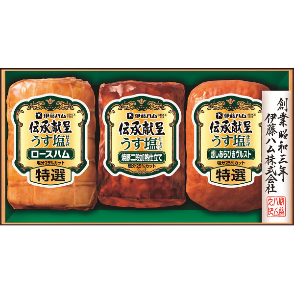 ●特選(ロースハム360g、燻しあらびきヴルスト160g)、焼豚二段加熱仕立て160g