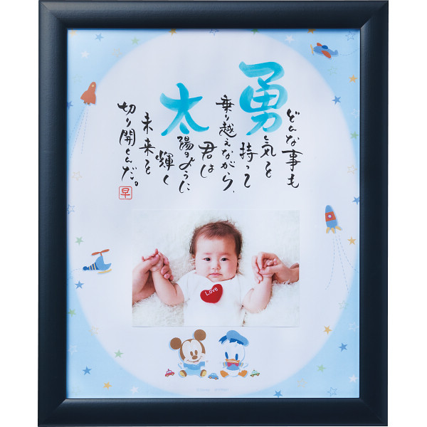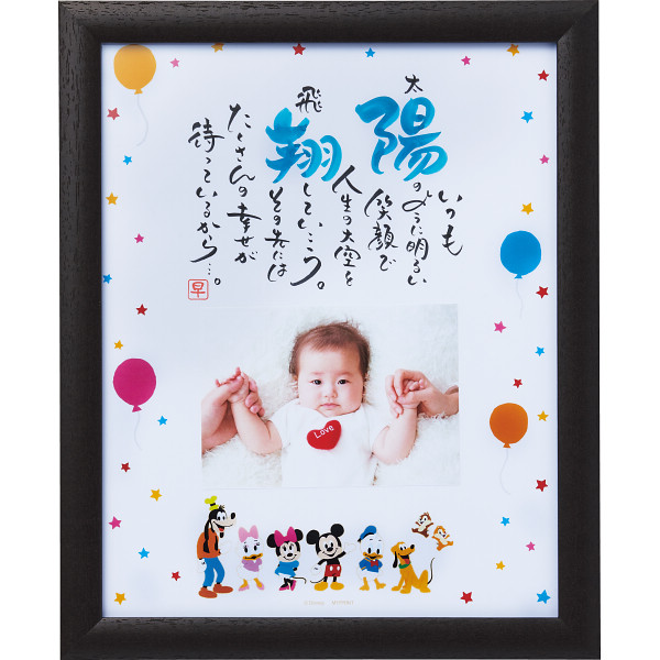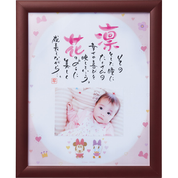 5種類のディズニーデザインから一つを選べる出産祝いに嬉しいアイテムです。写真の入るタイプなので世界にひとつだけのネームインポエムと一緒に飾れば他にはない素敵なプレゼントになること間違いなし。