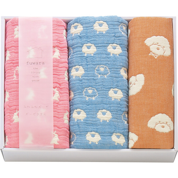 ふわら 6重織ガーゼフェイスタオル・ハンカチセット【26-7087-80】